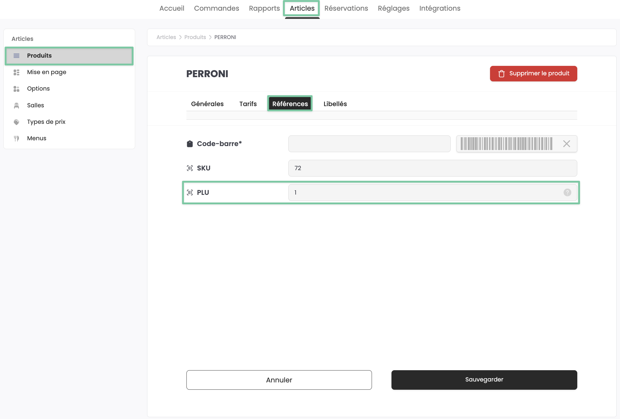 - Rendez-vous dans le Back-Office - Articles → Produits