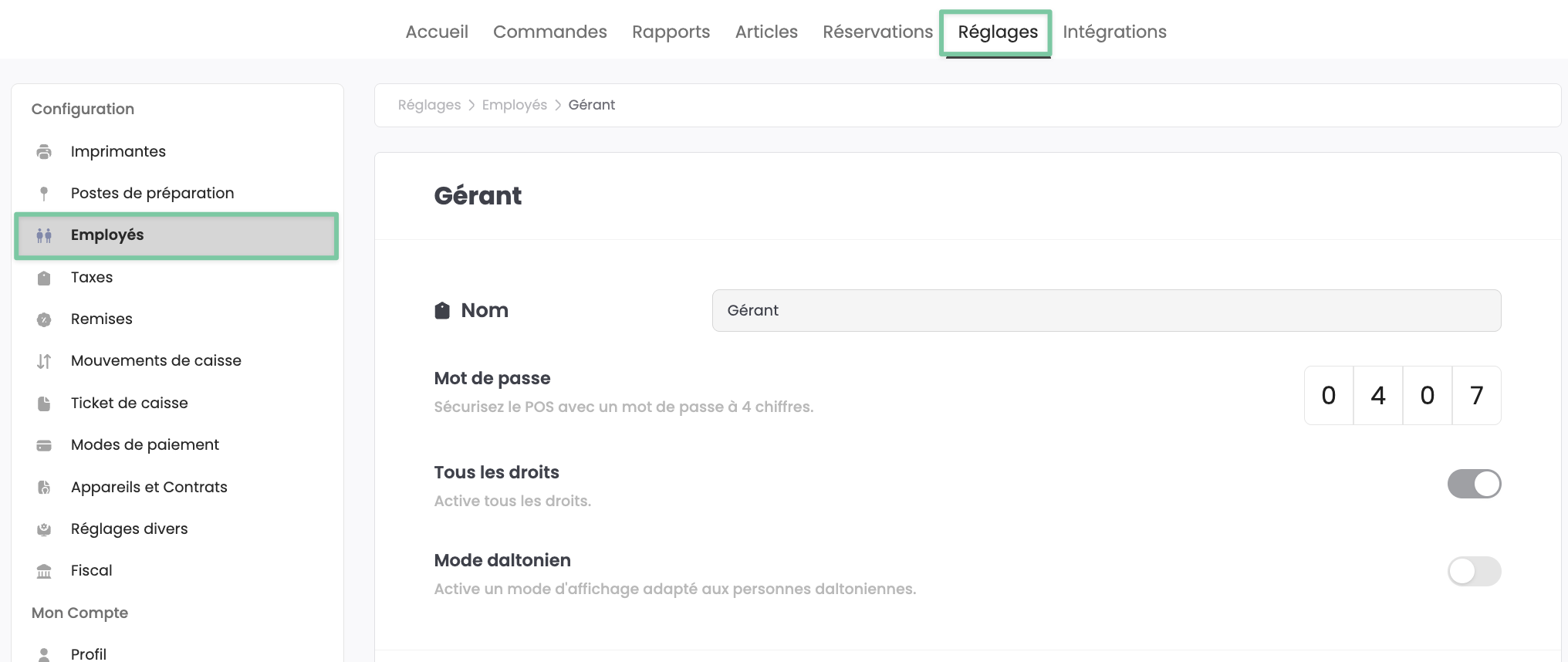 4. Cliquez sur Ajouter un service, puis renseignez le code employé correspondant à celui fourni par la solution GDB.